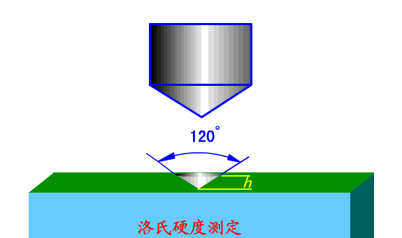 ? ? ? 當HB>450或者試樣過小時,不能采用布氏硬度試驗而改用洛氏硬度計量。它是用一個頂角120°的金剛石圓錐體或直徑為1.588、3.175mm的鋼球,在一定載荷下壓入被測材料表面,由壓痕的深度求出材料的硬度。