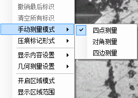 區域模式&連打連測功能,對于同一視野內可能存在多個壓痕,可選擇區域模式,每次測量時僅考慮設定范圍內的壓痕。連打連測時開啟區域模式,能避免同一視野內存在多個壓痕導致測試中斷的情況。 |