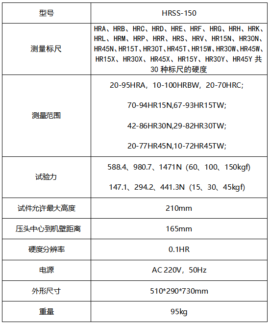 HRSS-150數顯全洛氏硬度計集洛氏、表面洛氏、塑料洛氏于一體的多功能硬度計,采用8寸觸摸屏和高速ARM處理器,顯示直觀,人機互動友好,操作簡便。
