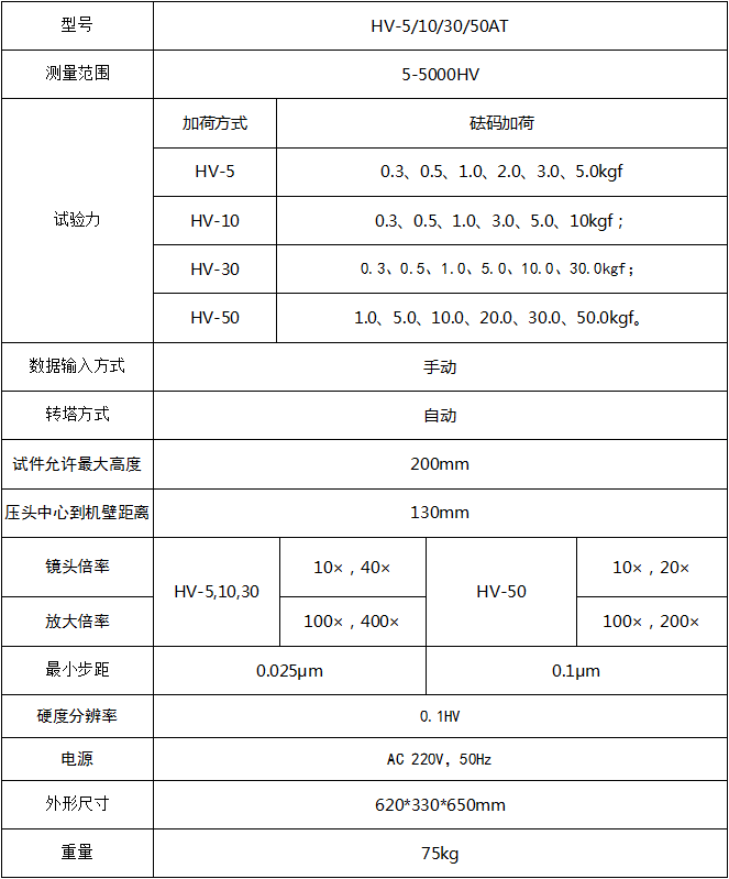 HV-5 10 30 50AT觸摸屏自動轉塔維氏硬度計,采用8寸觸摸屏和高速ARM處理器,顯示直觀,人機互動友好,操作簡便;運算速度快,數據庫巨量存儲,數據自動修正,并提供數據折線報表。